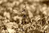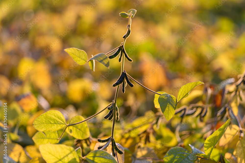 Soybean silhouette dusk, Calm soybean plant at sunset, Serene soybean stalk with backlit pods scene, Peaceful scene of soybean plant with glowing evening background