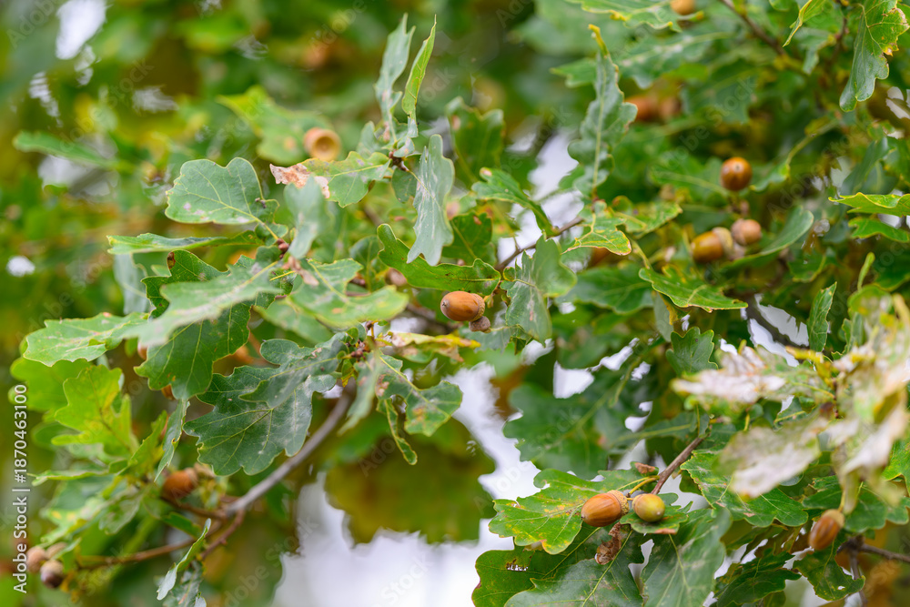 The Beautiful Oak Tree Leaves and Acorns Found in Natures Splendor During Autumn Days