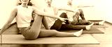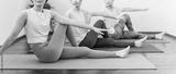 Women doing yoga and pilates in a yoga studio or yoga class (sports gym)