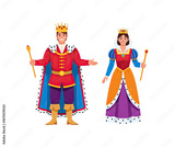 King And Queen Wearing Royal Attire Holding Scepters With Crowns On Black Background