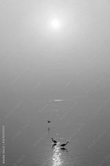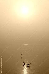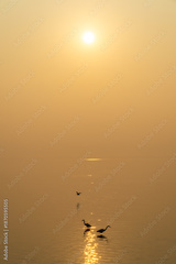 Golden Sunrise with Silhouetted Herons