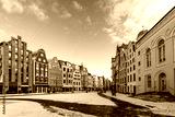 Blick auf die Kröpeliner Straße mit Giebelhäuser im Winter in der Hansestadt Rostock