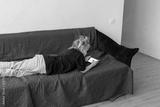 A girl is lying on the couch playing games on her phone