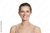 Happy mid aged mature woman looking at camera and smiling. Healthy face skin care beauty, middle age skincare cosmetics and cosmetology concept