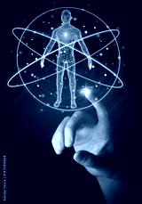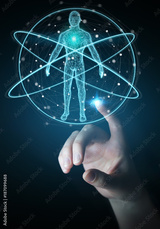 Businesswoman using digital x-ray human body scan interface 3D rendering