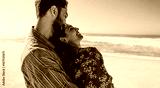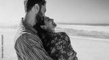 Held in the sunlight: A couple sharing a soft moment on the shore