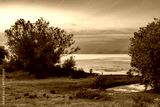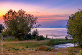 View of the beautiful landscape of Shiroka village beside lake at sunset near Shkoder, Albania
