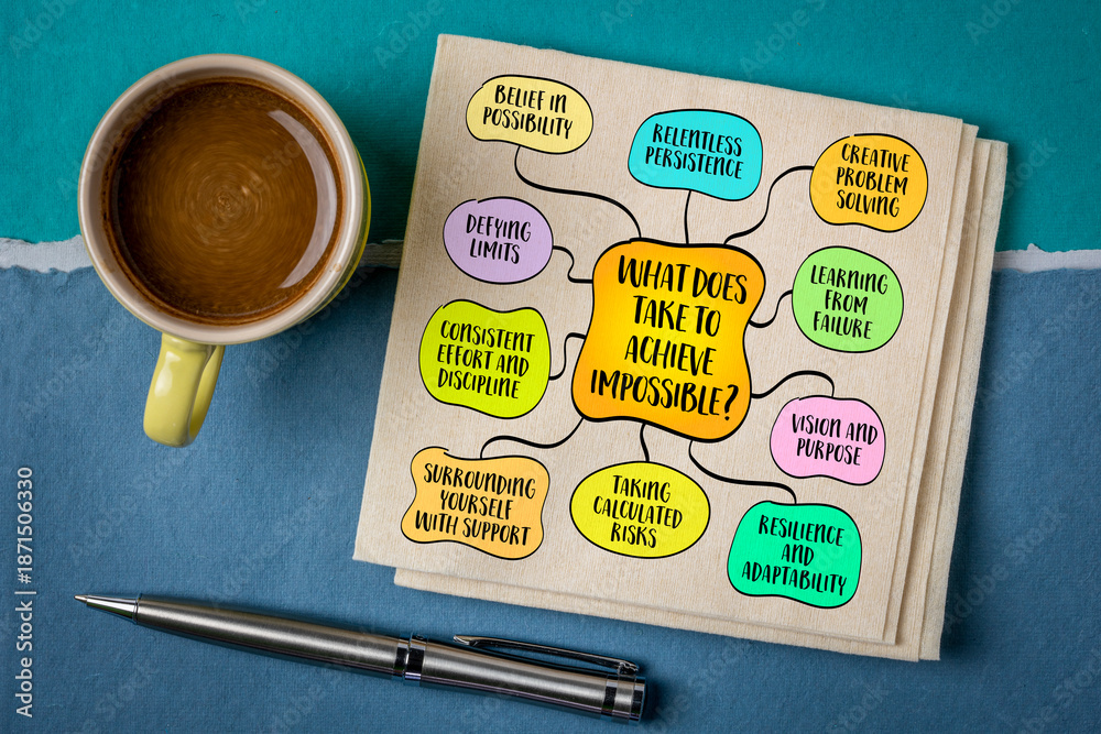 What does it take to achieve impossible? A combination of mindset, effort, and strategy that often defies conventional thinking, mind map infographics.