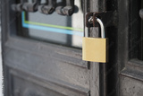 Lock on a door shows security and closure in a city