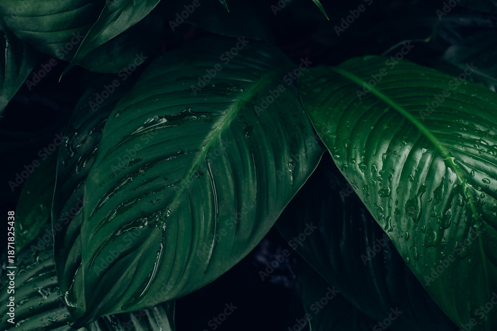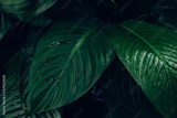 abstract tropical leaf textures on dark tone, natural green background.