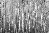 Black-and-white photo of forest landscape with birches