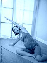 Asian pregnant woman in sportswear doing exercise in living room at home.