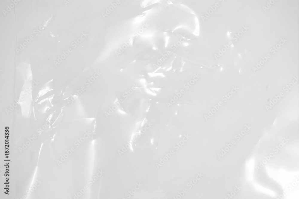 Plastic wrap transparent texture overlay effect. Polyethylene packaging of vinyl wrap or cd cover. Shrink crumpled plastic bag sleeve, package mockup illustration