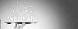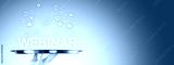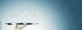 Webinar concept with digital communication icons above a server tray on blue gradient background, symbolizing online learning platform system.