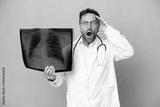 Middle age professional traumatologist doctor man isolated on blue background with surprise expression