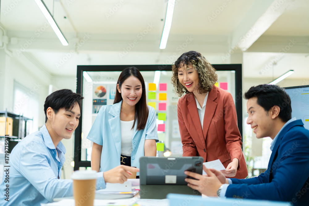 Young Asian female doctor in white coat consulting with senior male patient in the clinic.Healthcare professional using tablet to discuss medical results or treatment options.older elderly health care