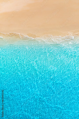Pristine tropical Mediterranean beach aerial view with calm ocean waves white sand coastline top perspective relaxing summer vacation tropical island paradise serene nature landscape travel background