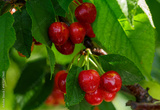 fresh ripe cherries hanging on a tree in orchard garden