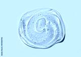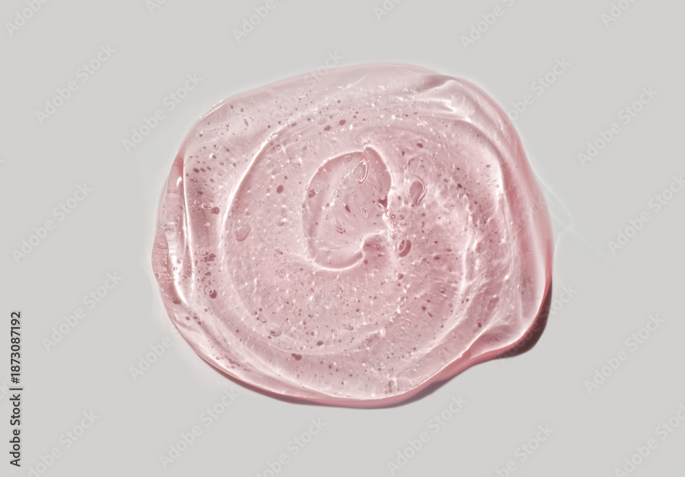 Cream gel drops red transparent cosmetic sample texture with bubbles on grey background