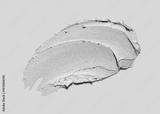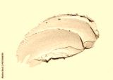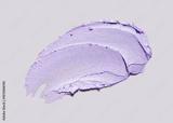 Cosmetic purple metallic holographic shimmering luminizer creamy eye shadow gel texture on isolated lilac surface