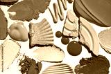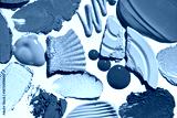 Eye shadow creamy liquid and pressed set multi shade of blue black crushed powder smudged background swatch