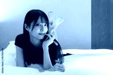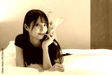 ベッドの上で黒いドレスを着た美しい大人の日本人女性モデル