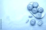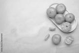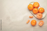 Fresh small tangerine mandarin orange in plate on light background.