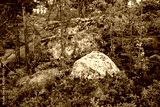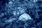 Landscape with rocks, stones and pine trees in forest by White Sea, Karelia, Russia, nature of North