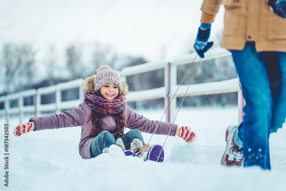 Dad with daughter outdoor in winter