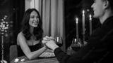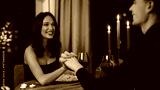 Happy Valentine's day. Happy couple in love spending evening at restaurant, holding hands and talking during romantic dinner, panorama