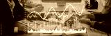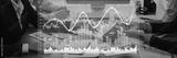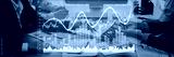 Business professionals engaged in analyzing financial data trends collaborate in a modern office, utilizing charts and graphs displayed on a screen. Scalp
