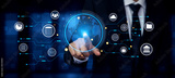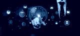 A global business network and digital infrastructure concept. A worldwide connection of services including data, finance, and secure communication. Motif