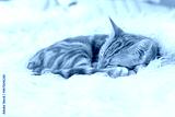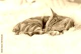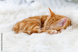 Close up of Orange Tabby Kitten Sleeping on White Blanket