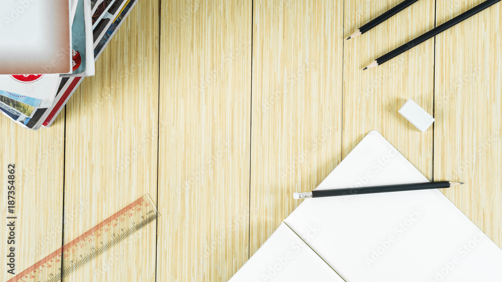 There is a pencil and put it on the book and the picture about education.Demonstrated teaching and use it as a background.