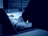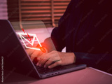 Phishing email alert icon on laptop computer screen. Concept of cyber fraud, scam, data theft, and phishing attacks. Perfect for illustrating digital threats, cybersecurity, and online risk awareness.