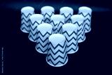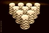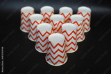 Arrangement of Orange Chevron Patterned Paper Cups on Black Background