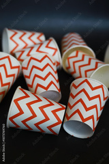 Colorful Zigzag Patterned Paper Cups on Dark Background for Party Decor