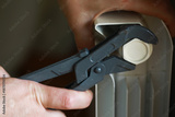 Hands Adjusting Radiator Valve with Wrench: Home Maintenance and Heating Efficiency Concept