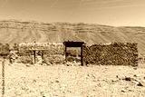 Traditional adobe houses standing in the middle of the Saudi Arabian desert, showcasing ancient earthen architecture adapted to extreme arid conditions.