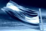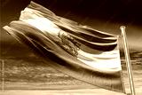 Waving Flag of Iran with Lion and Sun Emblem, Symbol of Protests and Opposition