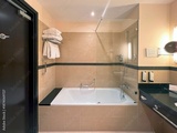 Bright bathroom featuring freestanding bathtub