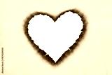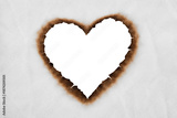 heart shaped transparent burned hole in white paper with dark charred edges creating a romantic and dramatic background for design and love themed concepts