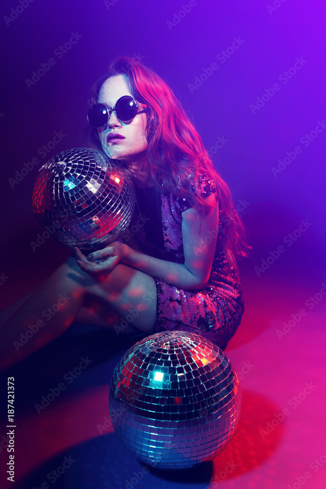 Sexy disco party woman.