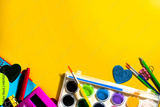 back to school background for kids & student, colorful stationery education in top view flat lay