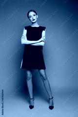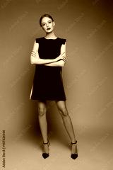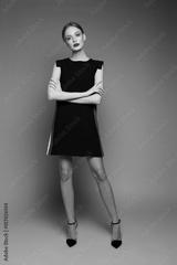 high fashion woman in short black dress.