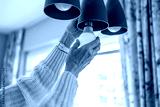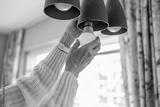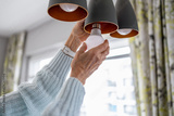 Senior woman's hands installing eco light bulb in her home