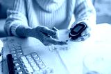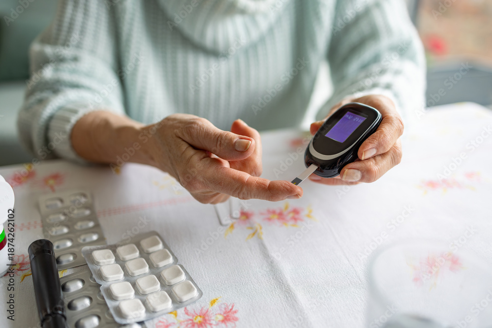 Senior Woman Checking Her Blood Sugar Levels by Glucose Meter at Home