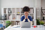 Female nurse or doctor interacting with patients remotely through tele-health consultation on a laptop, providing healthcare services in a modern medical office or hospital setting