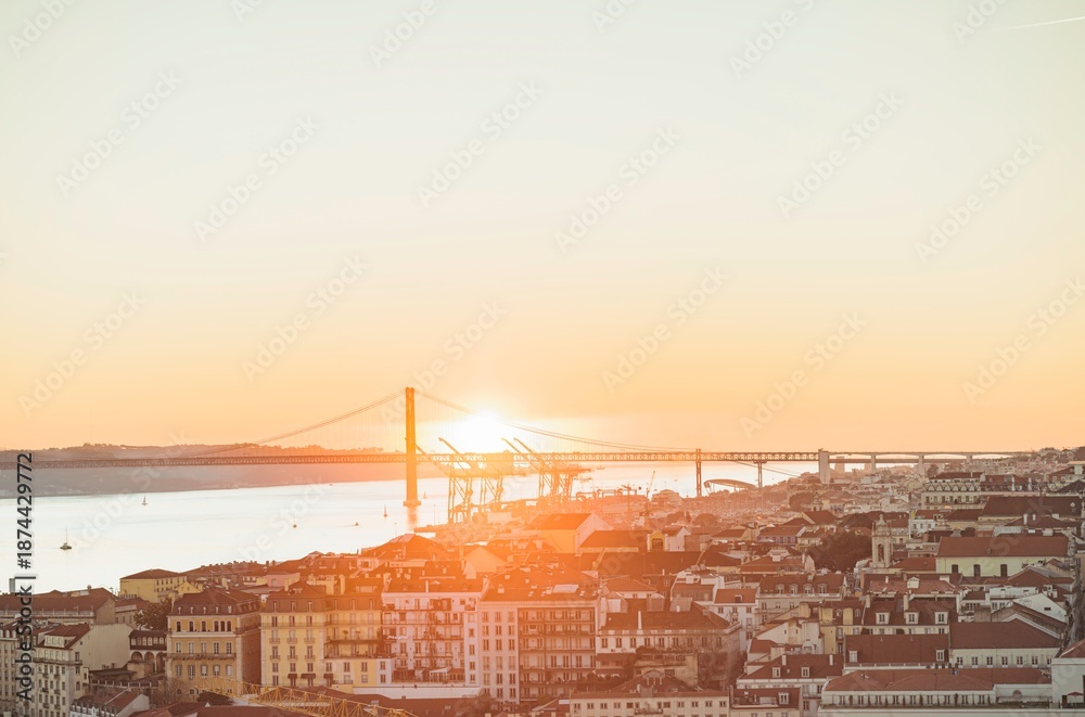 As the sun sets, golden light dances over the rooftops of Porto and Lisabona, casting a warm glow on the iconic bridges. A perfect moment of tranquility during a delightful holiday