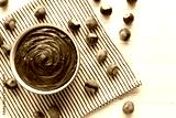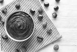 Delicious Homemade Chocolate Hazelnut Spread in a Bowl, top view.